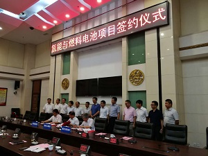 7月3日,氢能与燃料电池项目在市政府举行签约仪式。市领导王登喜、刘尚进、职伟、杨书廷,市政府秘书长吴岳善、副秘书长田发银,同济大学张存满教授、上海亮仓能源科技有限公司董事长谷军等出席签约仪式。市商务局、法制办、科技局、规划局、土地局、发改委、工信委、财政局、高新区及新乡电池研究院等相关部门负责同志参加签约活动。